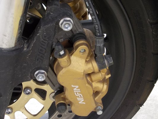 A Hondától megszokott módon – 150 ezres felárért – blokkolásgátlóval is kérhetjük, de az alap 296-os első tárcsák és a hozzájuk tartozó kétdugattyús nyergek is bőven elegek lehetnek. (A tesztverzió C-ABS-éhez háromdugattyús Nissin jár) Hátul 240-es szóló tárcsát találunk; lineárisan felépülő fékerő, jó adagolhatóság jellemzi a CBR 600F rendszerét.