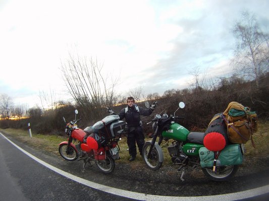 Eredetileg 50ccm-es Simsonokkal tervezték megtenni az utat, de végül a rendszámosítás miatt 150-es ETZ-kkel tették meg.