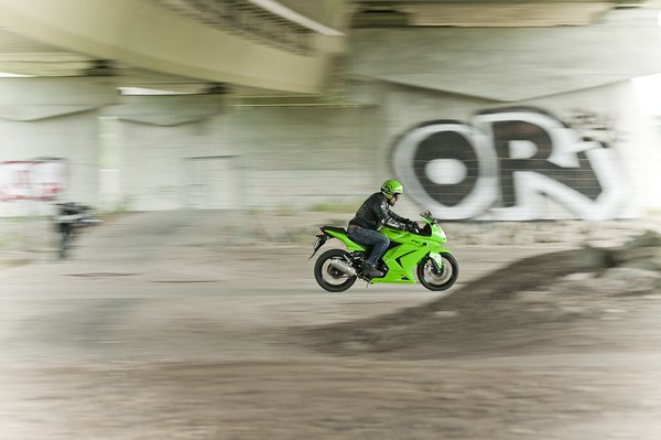 Annak ellenére, hogy már az ős-GPZ250-nek is ez a konstrukció az alapja, örömmel pörög, de néha sajnos túl sokat: egy igazi utazós fokozat hiányzik belőle, pedig a testtartás és a méretek is megengednék, hogy akár messzebbre is elmerészkedjen vele az ember. Néhány évtizede ez sportos túramotornak minősült volna, most kezdő csajmotornak tekintik a stabil, fekete acélcsöves vázzal épített Kawasakit.
