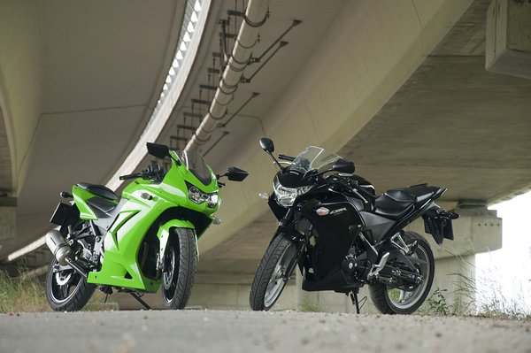 Mostanában eltűntek a Kawasakik. A magyar piacon egyre jelentéktelenebb a japán márka – úgy tűnik, a világpiacon is háttérbe szorultak, pedig időről időre gurítanak pár igen jó gépet. Az én egyik kedvencem a 2008-ban bemutatott 250 Ninja. Nem új, de máig friss; öröm volt előkeresni, hogy párba állíthassuk a 2011-es Honda CBR250-nel.