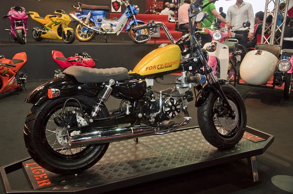 Szériaállapotban és rommá tuningolva is kergetik, ez a fiatalok egyik csodafegyvere. Sajnos nálunk ezt nem árulják, pedig a hazai városokban is vidám lenne a kis kerekű, körváltós, sportos futóművű motorka.
