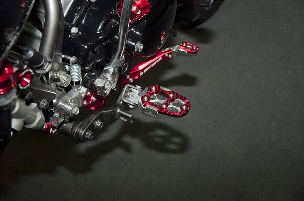 A Kawával szemben felépített standon egy kiegészítőgyártó sokkol. Úgy tűnik, rossz szellemek szállták meg a CNC gépeiket, mert kontroll nélkül ontják az eszméletlenül fölösleges, barokkos, eloxált fosokat. A helyiek persze imádják, bár lehet, hogy nem az összeset pakolják fel, mint a kiállító – így egyben elég sokkoló volt a látvány.