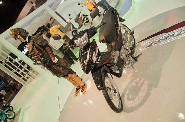 A Suzukinál egész sokan kíváncsiak voltak a 250-es Inazumára, a soros kéthengeres formája úgy tűnik, bejön a helyieknek. Meglepő módon az ő 125-ösük nem nagyon ütött léket a nézelődők szürkeállományába, leginkább csak azért álltak meg mellette, hogy lefényképezkedjenek az életnagyságú szamurájjal.