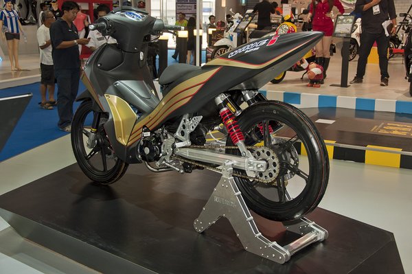 A kiegészítőkből is hatalmas a választék. Az extravékony felniket nagyon keresik. Míg idehaza a műpénisz hangulatú vastagítás a menő, Thaiföldön a minél vékonyabb gumira törekednek. A karcsú 100-125 köbcentis underbone gépeknek jól is áll, teljesítményükhöz biztosan elég a 70-80 milliméter átmérőjű abroncs. Rengeteg okosított karbiszett és kipufogó várja a vevőket, de utángyártott féknyeregben sincs hiány. Minden alapból tízféle árnyalatban kapható.