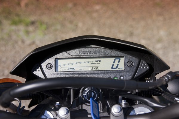 Ha pesszimista módon a lyukakat szeretnénk látni a sajtban, akkor rögtön egy érv a D-Tracker ellen: kicsi. A kis Kawa szuperbruttósításával lehetne kapni egy rendes supermotót, ahogy az adóalapot, ezt is meg kellene szorozni 1,27-tel minden irányban. Sajnos én is bűnös vagyok, mert a fotókon mellé kellett volna állítani egy kertitörpét, vagy bármit, ami mutatja méreteit. Na nem baj, a menős képeken rajta ülök: az az irdatlan nagy ember a Kawán 173,5 centis.
