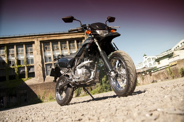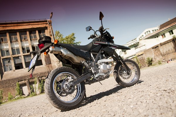 Nem tudom, hogy miért találták ki, hogy a KLX125-ből kell egy supermoto-változat is, biztos valami marketinges ötlete volt. Hiába, amióta Nyugat-Európában feltalálták a B125-öt, azóta ezen a 15 lóerőig terjedő liliputi világban az összes létező al-al-alkategória 125 köbcentis átirata is megjelent. A D-Tracker is ilyen jószág: az eleve nem túl nagy KLX-re 14-es küllős kerekeket raktak. Ezek még nagykerekű robogón is kicsinek számítanának, de így születik a mini supermoto.