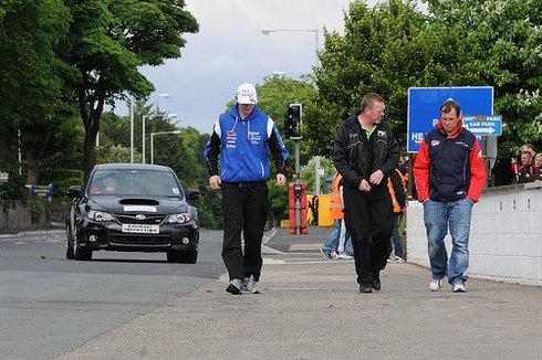 Az érzés ismerős volt tavalyról, idegtépő percek, várakozás és a végén valaki dönt. Általában a pályabíró magával visz néhány versenyzőt, akik véleményeznek. Most McGuinnessre, a tapasztalt Ian Lougherre és Conor Cumminsra esett a választás. Persze a köpködés hamar megkezdődött, sokan megkérdőjelezték, miért pont ez a három versenyző akar véleményt mondani, hisz Cummins eddig lemondta az összes viadalt, McGuinness nem akar kockáztatni, Lougher meg elég öreg ahhoz, hogy ne rizikózzon feleslegesen. Tény, ha Michael Dunlop a megmondó ember, lehet, hogy más döntést hoznak. Viszont a rendezőknek sem mentek el otthonról, nem a bevállalós gyerekekre szokták bízni az ilyen dolgokat. (A helyi rádióban egyébként Dunlop is úgy nyilatkozott, nem lenne felhőtlenül boldog, ha ilyen körülmények mellett kell versenyezni az ezressel.)