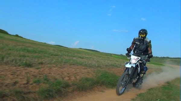 Szépen megzúztam a bordáimat hátul, vagy el is repedtek, ki tudja, de a motoron szerencsére egy karcolás sem lett. Ebből két tanulság van: nem megyünk be utcai gumival a dzsindzsába, másrészt soha többet nem megyek terepre védőfelszerelés nélkül. Mert ugye miben motorozik az isten barma, vagyis én? Egy szál endurós mezben.