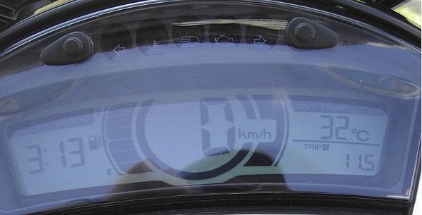 A pakolhatóság kissé elmaradt a vártnál, mivel az ülés alatt csak egy tartozékos táska, az elsősegély felszerelés, meg a tárcsafékzár fért el, amiben gyárilag egy szerszámkészlet van. Ide bukót nem lehet tenni. A kis helynek a 8 literes, fémből készült tank, illetve a hűtővíztartály elhelyezése is az oka. A motorhoz hátsó dobozt adtak, amelyet 120%-osan kihasználtunk az út során. A kétszemélyes ülés utas részén az előbb már említett hátizsák foglalt helyet. Plusz van egy kis rekesz a kilométeróra alatt, mondjuk a pénztárcánknak. Az óracsoport LCD-s, egyszerű, de jól áttekinthető.