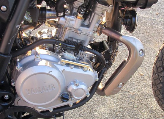 Az uniós norma miatt 15 lóerős, 125-ös blokk hajtja, amely fogyasztása 2,8 liter; 3 fölé talán 1-2 tizeddel lehet tornázni, igazán nyélgázos üzemmódban. Az egyhengeres ugyanaz, mint az R125 sportmotoré, de módosítva lett az igényeknek megfelelően. Komoly befecskendezés-vezérlés lett kitalálva a motor különböző terhelési állapotaira programozott algoritmusokkal és szenzoros visszacsatolással. Hihetetlenül hangzik, de már alacsony fordulaton is jól teljesít, aránylag nyomatékos.