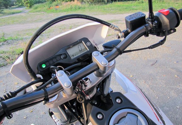 Ha a két WR-t, az X-et és az R-t képen egymás mellé tesszük, azt gondolhatjuk, szinte ugyanaz a motor. A kipufogó, a műszerfal megegyezik, az első fékcső ugyanolyan furán ível a műszerfal felett. A fejidom különbözik, a supermotó kicsi, kerék feletti sárvédője az endurón már nincs meg. Elöl 21-es, hátul 18-as kerekek vannak. Itt a fék is más, kisebb átmérőjű – 298 helyett 240mm –, a Brembo szállítja őket.