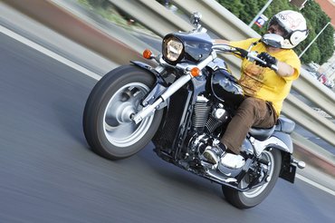 Az ilyen szemétkedéseket leszámítva nagyon lelkesen megy az Intruder, egyesben kb 65-ig, kettesben 95-ig gyorsul, hármasban pedig megfutja a 130-at. Ezt a tempót könnyedén elviseli, bár fölötte már kifogynak a fickóssági készletei, de itt már az embernek sincs nagyon kedve tovább húznia. Érdekes, hogy a fura lámpaidom azért egy picit eltereli a szelet is, de a cirkálás azért kellemesebb. Hogy mást ne mondjak, 130 táján már a menetszél kezdi felemelni a az ember lábfejét, mert cirka 30 fokos állásszöggel kapja meg a légáramot a magasan és elöl lévő lábtartón. Úgyhogy aki szeretné a felhajtóerő fizikáját tanulmányozni, íme a remek lehetőség. Hadd dicsérjem még egy kicsit a váltót, mert messze az átlag felett pontosan működik, nem kell hozzá nagy erő, és rendesen megvan az üres fokozat is.