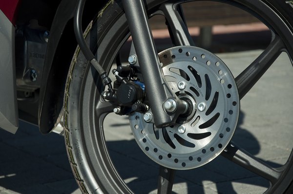 A 17-es kerekek ideálisak: jó az úttartás, öröm a Honda vezetése. A futómű hangolása egy kicsit lehetne keményebb is, nagyobb tempónál a fenék érezhetően imbolygósabbá válik. A fékek viszont megfelelnek az alacsony tömeghez: kiszámítható módon, a megfelelő erővel lassítják a Wavet.
