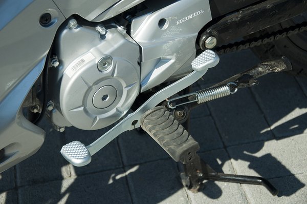 A lábtartó jó helyen van, ügyesen elérjük róla a libikókás váltókart. Ezen már jobban elfér a talp, mint a hasonló Kawasaki Kaze ZX130-on, de 42-es lábméret felett már itt is pipiskedni kell a cipőben.