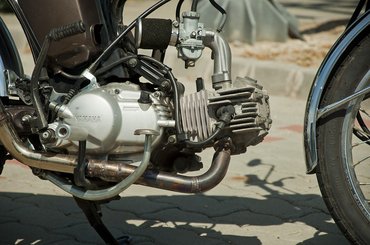 A nyitott légszűrős karburátoron nem tűnik nagyobbnak a gyári méretnél. Feltehetőleg a kipufogó, a henger, a szelepek mellett a főtengely is a Takegawa terméke. Ismerve a japán árakat és végignézve az egyes kiteket, 7-800 ezer forint értékű alkatrészt szerelhetett ebbe eredeti gazdája – magyar aggyal ez bődületesen sok, de a kinti viszonyok nem hasonlítanak a hazaihoz; ez ott hunyorogva, de belefér.