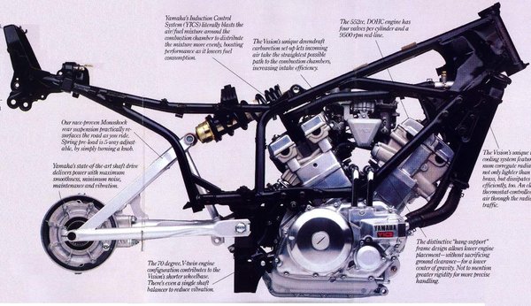 A 70 fokos V2-es olyan, mint egy fél V-max blokk, ami negyedannyira se megy. Karburátorproblémák, pusztuló önindító és gyújtás jellemezte, rohadt a kipufogója és nem sikerült normális futóműhangolást sem összehozni a japánoknak.