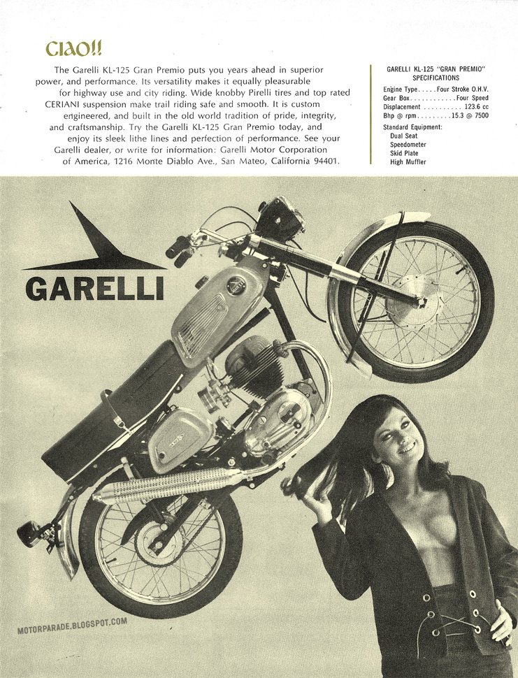 ilyen gépet életemben egyszer láttam, az imolai börzén, ahol Csikóssal shoppingoltunk – ő motort, én csempéket. A Garelli rengeteg érdekes gépet gyártott akkoriban, de a Vespához képest csupán manufakturális termelésben voltak érdekeltek; Olaszországban rengeteg kisebb gyártó volt, ők a középmezőnyben küzdöttek.
