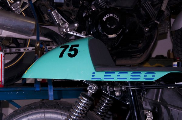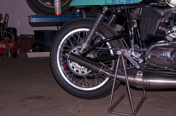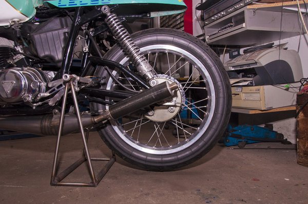 Nem megszokott veterán versenymotoron kormánysúlyt látni, de itt van. Egyéb, unortodox trükkök is akadnak – az évek során kikísérletezett, kiszámított megoldások felülírják a versenypályán megszokott vagy beképzelt trükköket.