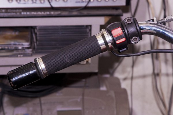 „1500-as Intruderről vannak a súlyok. Ugyan menetstabilitás szempontjából semmi szükség rájuk, de praktikus. Gondolj bele, ha elcsúszol, nem a kormány görbül, hanem ennek a csavarja viszi el az erőt, simán tovább tudsz motorozni.