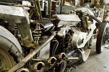 Igen, ez általában így működik. Idehozzák a motort és annyit mondanak – „csinálj belőle valamit”. Aztán majd meglátjuk, mi sül ki az egészből. A megrendeléstől számítva egy évvel számolhatunk, míg elkészítek egy motort.