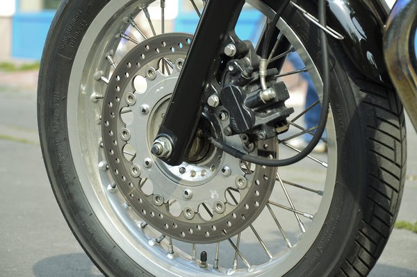 A fékkel sincs baj, az öregecske Nissin hibátlanul megfogja. A küllős kerékhez nem is passzolna sokkal izmosabb rendszer, így tud igazán érvényesülni a fémpálcikák megcsillanó varázsa.