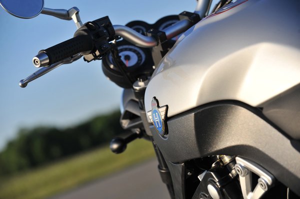 Mielőtt elindulunk, két különböző nyeregmagasságú előszériás gépen vehetek üléspróbát. Annak, amivel útnak indulok, a legmagasabbra van állítva az üléspozíciója. „Ezt alátétekkel könnyű módosítani a WP rugóstagon” – világosít fel Robert Rieder, a Horex műszaki főnöke. „Mivel a hozzád hasonló újságírók folyton száguldoznak, a legmagasabb helyzetre állítottuk, hogy a teljes bedönthetőség rendelkezésedre álljon.”