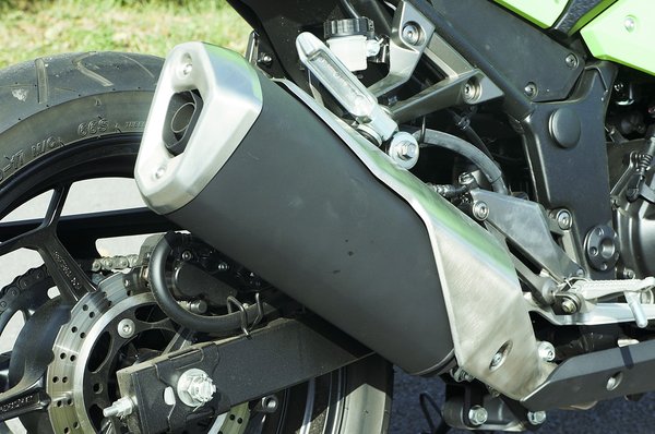 A hatszáz köbcentisek literteljesítményét nyújtó Ninja 300-on egyszerű műszaki megoldások is bőven vannak. A gyárban nem csak az ER-6 sorozat esetében gondolták úgy, hogy akik elsősorban közlekedési eszközként tekintenek a motorkerékpárjukra, az utcán parkolnak vele, horribile dictu nem ragasztanak rá kedvezményesen vásárolt fényvisszaverő felnicsíkot meg 46-os rajtszámot, és nem mossák le minden hétvégén, azok nem frusztrálódnak, ha nem állítható az első futómű nyomófokozati csillapítása, beérik a gyári optimummal.