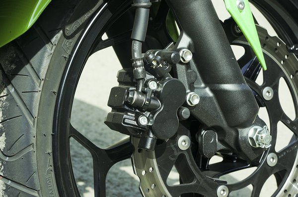 Az első fék is egyszerű. A tárcsa pereme hullámos, ami vagány, de nincs belőle másik, így a fék összteljesítménye nem nyűgözött le. Ehhez a motorerőhöz valódi egyujjas használhatóságot szeretnék és rövidebb fékutakat. Talán a százhuszonötösökre való főfékhengert kéne lecserélni, ugyanis a motor tömegével nincsen gond. Százhetvenkét kiló teletankolva, ami soknak fog tűnni, ha megjelenik a szintén A2-kategóriába szánt KTM Duke 390, de a gyakorlatban inkább hosszúnak és terebélyesnek érezni a kis Kawasakit, tohonyának semmiképpen.