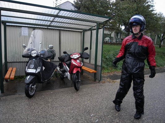 A nap ajándéka, hogy nem estünk az árokba, pedig benne volt a pakliban, illetve az a néhány kilométer a négyszázthatvanból, ahol száraz volt alattunk az út. Akkor bitang jókat kanyarogtunk a Vespával és a Hondával. Előbbi nagyjából három litert fogyaszt százon, a Wave viszont csak 2,5-öt, de azon nincs szélvédő. A robogó végsebessége, GPS szerint 84. Ezt érdemes figyelembe vennünk a továbbiakban.
