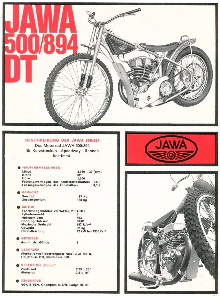 A Jawa elődje az ESO volt, Jaroslav Simandl versenyző alapította. Egy törpeautó prototípus kivételével mindig is sportmotorokat gyártott: salak, terep és utcai vázakhoz is készítettek egyhengereseket. 1964-ben olvasztotta be őket a csehszlovák pártvezetés a Jawába, de előtte még olyan technikai csemegéket is kifejlesztettek, mint Miloslav Souček 1962-es desmó (kényszervezérléses) versenygépe.