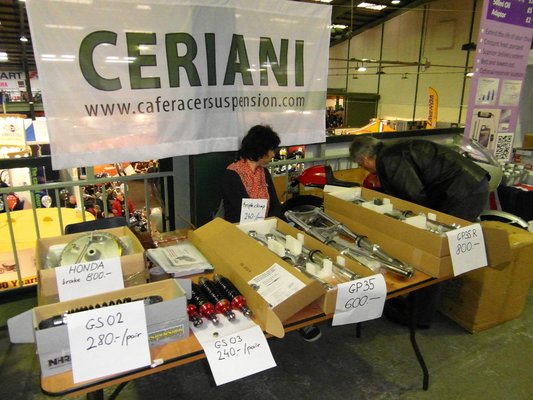Mivel ez a fesztivál tulajdonképpen börze (ők autojumble-nek hívják), adódott a megoldás: vigyünk ki valamit, amit el lehet adni. Oldtimeres pályafutásom a „szarból várat építés” jegyében telt, rengeteget kínlódtam a futóművekkel, ennek mellékterméke néhány saját fejlesztésű villa és rugóstag– ez lesz a kínálat egyik fele. Átszaladtam Solymárra Nyitrai Pistához, ő is adott egy kereket meg egy féket, így aztán mikor elfoglaljuk asztalunkat Staffordban, csinos kis választékot pakolunk ki.