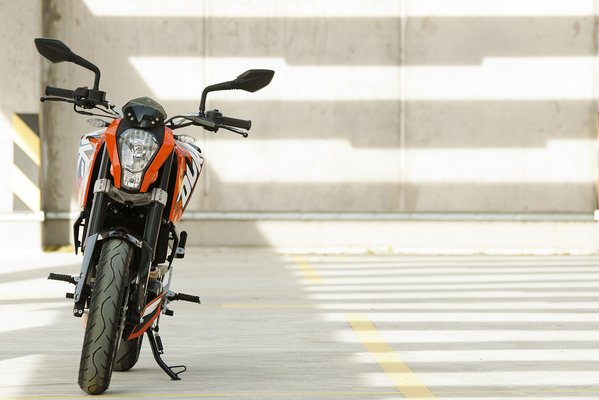 Az osztrák-indiai vegyesvállalat ötlete zseniális: úgy tervezték meg a folyadékhűtéses egyhengerest, hogy ugyanazzal a forgattyúsházzal több különböző köbcenti-kategóriát lefedhessenek. Néhány alkatrész cseréjével több mint duplájára nőhet a hengerűrtartalom, miközben a tömeg nem változik. A Duke 125 és a Duke 200 a mérlegen 129 kilót mutat üres tankkal, míg a 390-es 134,5-öt.