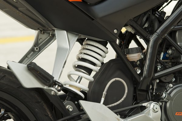 A WP által készített fejreállított villa ugyan nem állítható, de kétségkívül minőségi darab. A hangolása rendben van, nem pogózik, az úthibák sem hozzák zavarba. A KTM tulajdonában levő futóműgyártó tapasztalatát egy rövid próbaút után senki sem vonja majd kétségbe – bevallom, a két kerék mozgását olyan ügyesen kezelik, ami ebben az ár és köbcenti-kategóriában páratlan.
