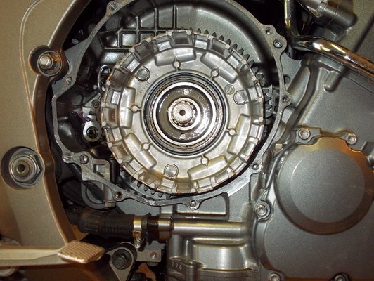 Mivel azonban ahogy hűl az idő egyre zavaróbbá vált a hiba, ezért úgy döntöttem szétszedem a kuplungot és megvizsgálom. Amit találtam elég érdekes, jól látható, hogy a kuplung kosár valamihez hozzáér erőteljesen.
