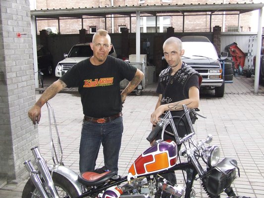 A parkolóban egy nyakig olajos fickó lézengett a motorom körül, ő volt Ruszlan. Hihetetlen, de Kazahsztán egyetlen autó és motor átalakító műhelye épp a migrációs hivatallal szemben van, és Ruszlán birtokolja Kazahsztán valószínűleg egyetlen épített Harley-Davidsonját. Nincsenek véletlenek.