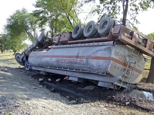 Ahogy kiértem a hegyek közül, nem mindennapi látvány fogadott. Egy hatalmas csőrös benzinszállító tartálykocsi az út mellett pihent, csak épp fejjel lefelé. A járművet szúnyog módjára megszálló helyi erők ott szívták a benzint, ahol érték, volt aki az árokból merte vödörrel, volt, aki cigivel a szájában bámészkodott