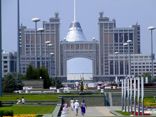 Egész pofás díszletet hoztak össze az olaj és a gázmezők gyümölcséből, amit aztán kineveztek fővárosnak. Igen, Asztana jelentése kazah nyelven: főváros. Aranyozott üvegű 30-40 emeletes irodaházak állnak üresen, az egész város teljesen kihalt.