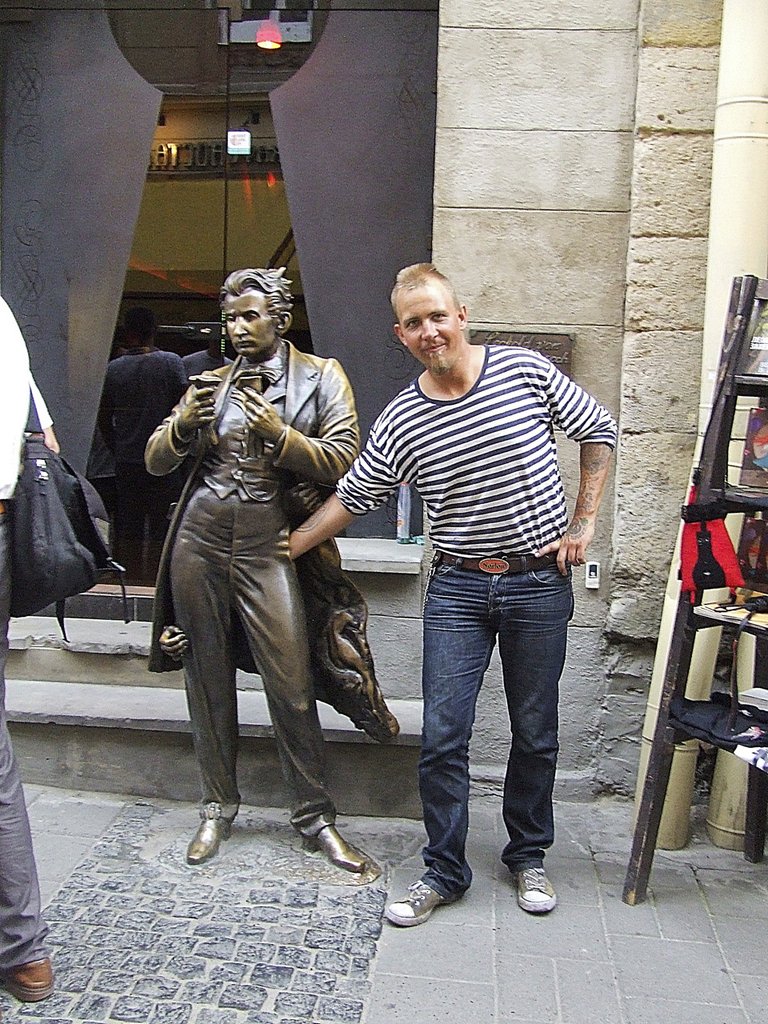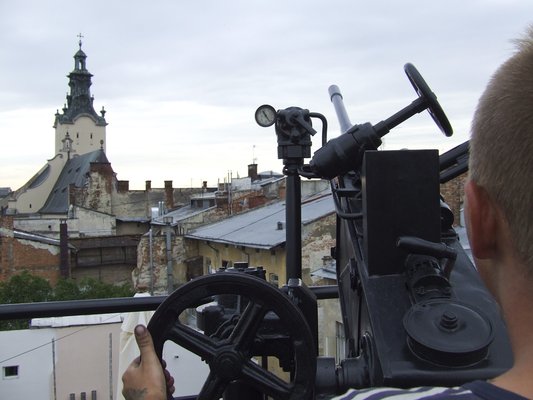 Roman, a West Ukraine Motors műhely tulaja segített megcsinálni a beállt főfékhengeremet, meg feltöltöttük az akksimat, aztán elhúztunk várost nézni. Négy szintes, gangos házban jártunk, ami a pincétől a tetőig egy második világháborús stílusban berendezett pub-ként üzemelt. A lapostetőn is bárpult van, fölötte több méteres légvédelmi ágyú, amibe bárki beülhetett és foroghatott vele. De ez még nem minden, mert a zsidó kocsmában 3000 Ft egy sör és neked kell lealkudnod az árakat. Vagy ott van a mazochista kocsma, ahol minden rendelésért verés jár egy ostoros csaposlánytól, a bejárat előtt pedig Leopold von Sacher-Masoch bronzszobra állt – ő a mazochizmus „feltalálója”.
