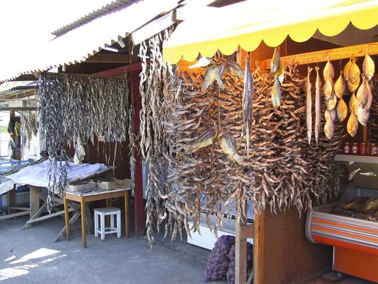 Vasárnap reggel még megszereltem egy Road Kinget, aminek az önindító reléje beadta a kulcsot, majd útra keltem a Krím félsziget felé. Valamiért a helyiek a füstölt halban látják a jövőt. Legalábbis erre következtettem abból, hogy az út mellett helyenként 100 méter hosszan mindenki ezt árulta: halak ezrei lógtak madzagra fűzve. Másnap sikerült úgy eltévednem, hogy a főúttal párhuzamos mellékúton tudtam haladni, annak a veszélye nélkül, hogy egy Kamaz gumiabroncsának bordáiban kelljen leélnem a hátralévő életem.