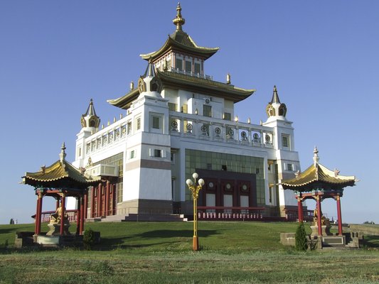 Itt összefutottam Alexszel, aki egyébként Kelet-Szibériában kutat olaj után, de most épp a szabadságát tölti. A főtéren egy gigantikus sakktábla található, mint tőle megtudtam, itt kötelező tantárgy a sakk. Megmutatta a nemrég elkészült buddhista templomot a város szélén, ami most Európa legnagyobb buddhista épülete. Este becsületesen beittunk.