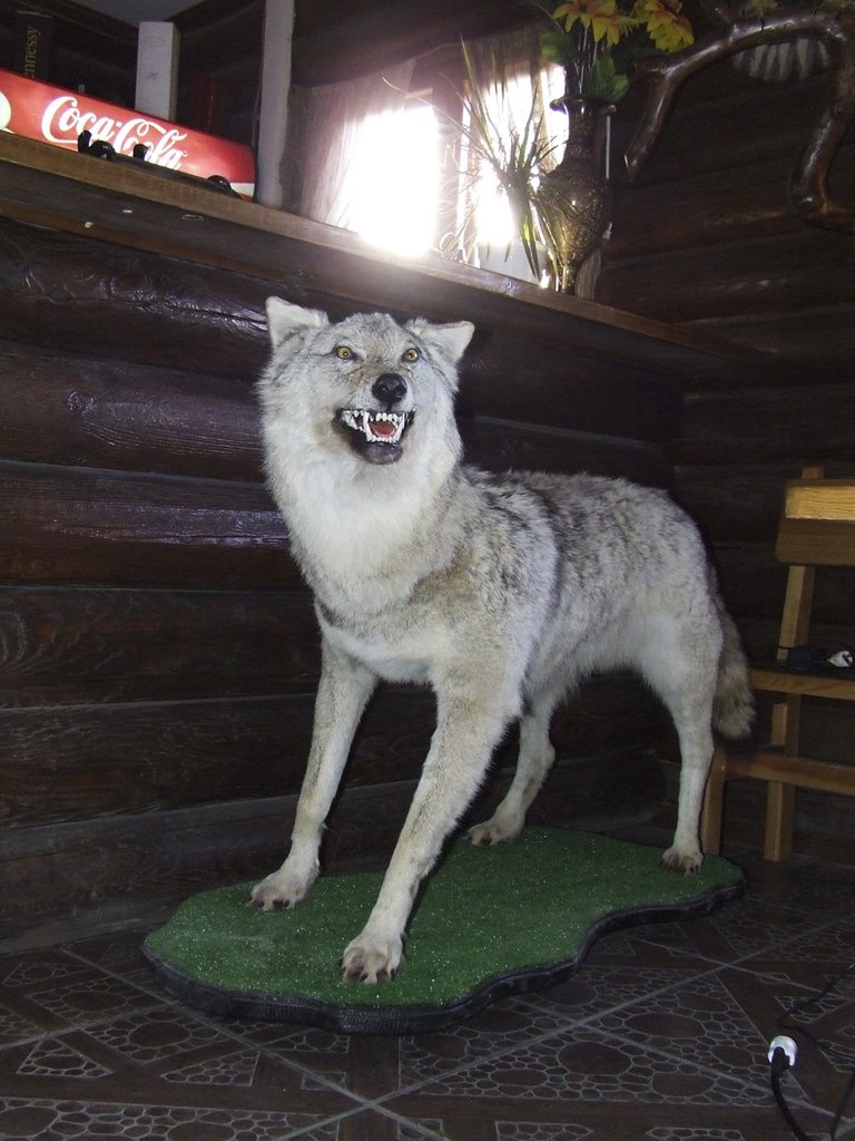 Később a helyi kocsmába is benéztem, ahol két vicsorgó, derékig érő kitömött farkas próbálta elriasztani az embereket a pulttól, kevés sikerrel. Állítólag a környéken lőtték őket, aminek hallatán kicsit átértékeltem a vadkempingezés veszélyeit: a fene se akarja, hogy kitömjenek és egy kocsmában állítsanak ki.