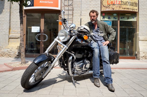 Aki látta őt a fekete Triumph Bonneville Americán a budapesti forgalomban, csak annyit vehetett észre, hogy ez a férfi nem bizonytalankodik. Határozott gázadásokkal, precíz fékezésekkel terelgeti a soros kéthengerest – nem gondoltam volna, hogy egy külföldi ilyen bátran és ötletesen oldja meg a fővárosi dugó nem éppen logikára épülő feladványait.