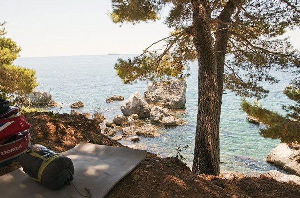 Nagyon szép helyen, egy meredek sziklafalon rendezkedtek be társaink. Alattunk a tenger, felettünk tűlevelűek, szemben a nap zuhan, meg nyeljük a csíkokat is. Még a hálózsákjaink alatt rothadó, szétdobált kotongumik se zavarnak ma. Igazából semmikor. Bobek, Levi és én kiülünk a sziklákra pálinkázni, biztos ami biztos. Szállnak a bölcs szavak, bár igazából nem emlékszem rájuk. Matt. Az élesre erodált szikla nagyon vágja a kezem, hogy fogok én felmászni?
