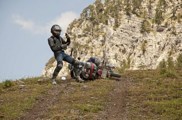 Fricivel a 2700 m-es csúcs közelébe kapaszkodunk, természetesen terepen, nincs is más út. Első kerekem nem sokat van a talajon, legalább nem kopik a gumi. A kék-fekete motoromon minden fehér az út porától, csak a négy ujjam alatt látszik némi festék a kuplung és fékkaron.