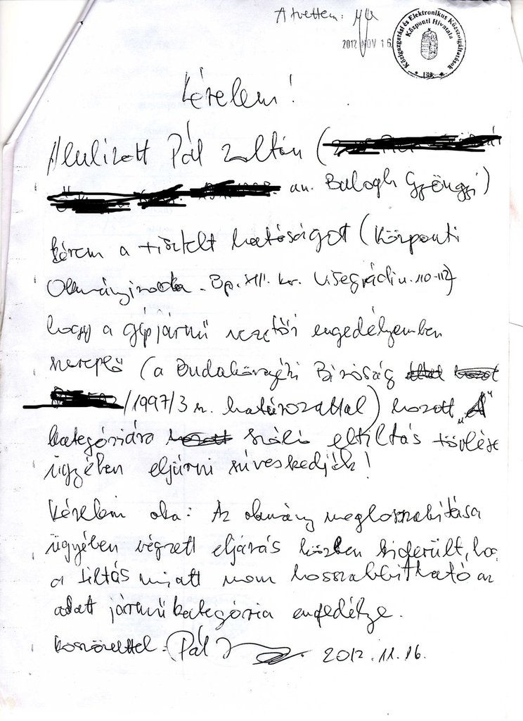 Tehát ez esetben vállalnom kell az engedély nélküli járművezetés rizikóját, illetve annak utólagos igazolása is egy-egy külön ügyet vonhat maga után. Aztán ha mégis elmennék a mi okmányirodánkba és ott sikerrel intéznék a törlést, akkor sincs baj, az ő kollégái menet közben látják majd a rendszerben, hogy megoldódott az ügyem, és automatikusan érvényét veszti a kérelmem. Firkáltam hát egy kérelmet a központi okmányirodának.