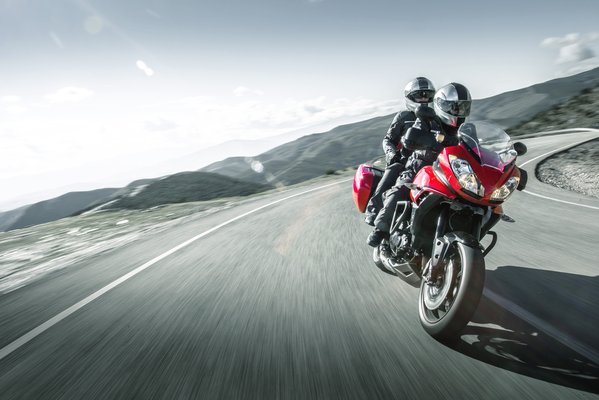 A megerősített segédváznak hála nehezebb csomagokkal is terhelhető a hátsó rész – a gyári felszerelés része a formatervezett, szélcsatornában tesztelt dobozcsalád. A fehér és piros színben kapható gép természetesen blokkolásgátlós fékrendszert kapott.