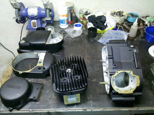De akadt egy megoldhatatlan probléma. Az egyik oldaldekli be volt törve. Na nem nagyon, csak épp annyira, hogy ne legyen jó. A vaterán alkudoztam egy komplett blokkra, de végül nem nyertem meg és valószínűleg egy Robi kapában működni majd tovább. Kézenfekvő lenne behegeszteni, de pont ott a Yamaha felirat – annak búcsút mondhatnék. Így hát újra felkerestem a szakit, aki öntvényeket szokott nekem hegeszteni.