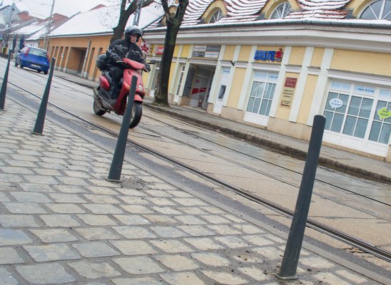 A gond az, hogy ezek a cölöpök veszélyesek. Főként a Bécsi úton észak felé haladó motorosokra. Itt található egy olyan útszakasz, ahol a forgalom és a Promenád között közvetlen kapcsolat van, mert az út szűkülése miatt már nincsenek parkoló autók. Ezen az szakaszon a járműforgalom a 17-es villamos pályájára terelődik, ahol a burkolat és a sín állapota is siralmas. A vízszint teljes hiánya, a kátyúk és a különböző típusú útburkolatok találkozása önmagában is megnehezíti a motoros közlekedést. Mivel az említett út a fővárosi önkormányzat fennhatósága alá tartozik, ezért nem volt része a felújításoknak. A budai fonódó villamoshálózat projektben várható az út és a sínpálya teljes felújítása. A munkákra két évet szánnak, de csak a harmadik negyedévben kezdik el.