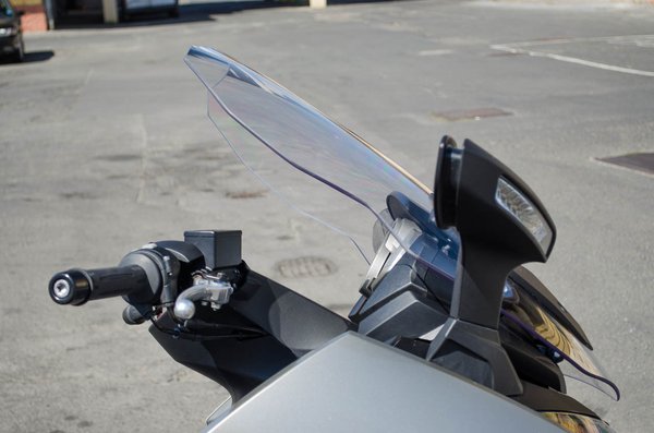 Az idomzat olyan, hogy ha nem lennék ekkora sznob, azt mondanám, gyenge minőség. A BMW-embléma viszont ébreszt annyi tiszteletet, hogy ne szarozzam kapásból a műanyagokat, pedig lehet, hogy megérdemelnék. Elképzelhető, hogy az egész egy precízen megírt forgatókönyv alapján bekövetkező tervezett megsemmisülés: ha felborulnánk a motorral, a burkolat atomizálódása felemészti az esés energiáját, és mi frissen, vidáman, de legfőképp sértetlenül pattanunk elő a romhalmaz alól. Vagy egyszerűen csak gyengére sikerült a minőség. Úgy remegnek a tükrök, mint egy kiforgatott Harley Sportsteren, csak ezen nem a motor vibrációjától, hanem a menetszéltől. A szélvédelme viszont tényleg olyan, hogy ez életem szélvédelme.