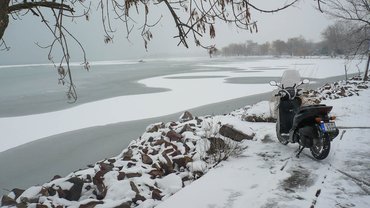 A fogyasztás kellemes, 75-90 -es téli tempóban 2,98 l/100 km,ez érdekes módon egyezik a futárkodásos városi elmebaj átlagával, sőt, annál kicsivel talán magasabb. Kevesebbre számítottam, de 0, -1 fokban, enyhe szembeszélben ne legyünk maximalisták, egy nyári, lazább öltözetben tett kiránduláson ez az érték várhatóan 2,5-2,6 liter lehet. Ezt követően megnéztem kedvenc kilátópontomat Szabadi-Sóstó előtt, de akár Albion is lehetett volna a túlparton. Vagy száz méter acélszürke Balaton fodrozódhatott a szemem elött bele a semmibe. Hála Istennek, jó húsz centivel magasabban, mint ahol szeptemberben hagytuk.